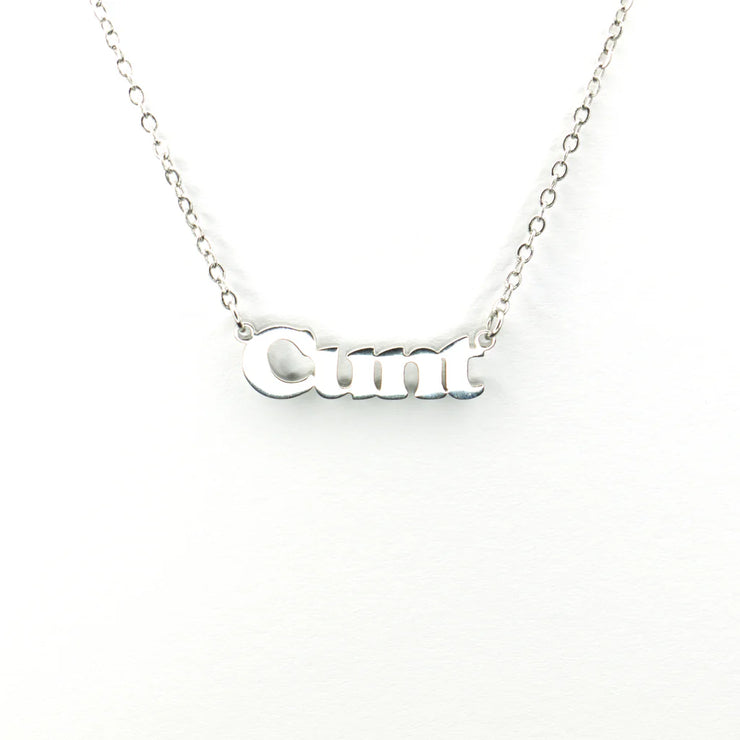 Cuz ur a brat bb. These shiny silver necklaces feature cheeky words and are made of stainless steel, making them waterproof, party-proof, and even perfume-proof.